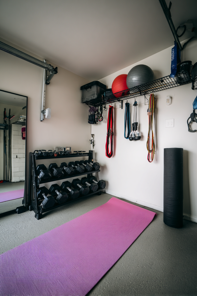 A fitness corner adds health-focused functionality to your garage retreat. You don’t need expensive equipment to create an effective workout space. Start with a quality yoga mat and a set of resistance bands. Add adjustable dumbbells or kettlebells for strength training. A wall-mounted mirror helps with form checks during exercises. I recommend including a foam roller for post-workout recovery. Consider a pull-up bar that mounts in the doorway or on the wall. A small speaker lets you play motivating music during workouts. This setup provides convenient fitness options without requiring a gym membership or dedicated home gym room.