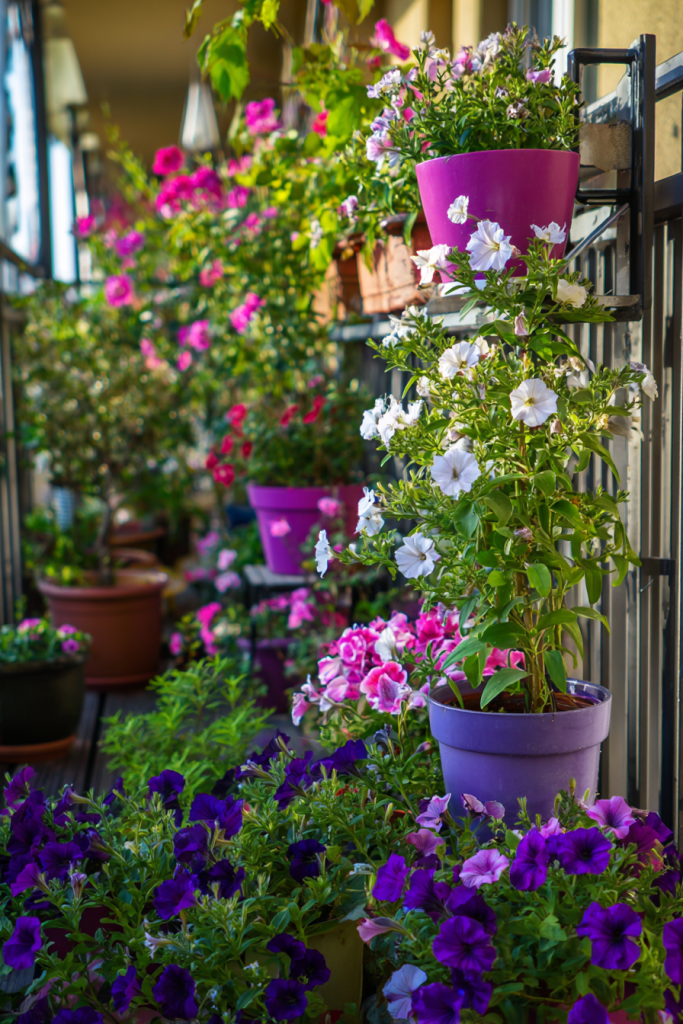 Make a bold statement with an abundance of flowering plants in coordinated containers. I rotate seasonal blooms to keep my balcony looking fresh year-round. Group containers of varying heights and sizes for visual interest. Choose a color scheme and stick to it, like all purples and whites or hot pinks and oranges. Use matching or complementary pot colors to unify the look. Mix flowering plants with foliage plants for texture contrast. Deadhead regularly to encourage continuous blooming. Geraniums, petunias, and calibrachoa are excellent choices for full sun. Add fragrant flowers like lavender or stock for sensory appeal. This living artwork transforms your balcony into a vibrant garden gallery that changes with the seasons.