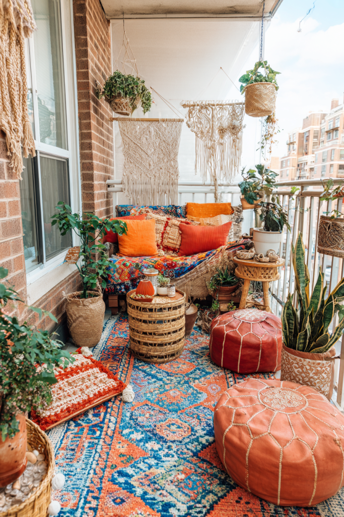 Create a globally-inspired bohemian oasis by layering rich textiles and eclectic patterns. I love how mixing colorful throw pillows, patterned outdoor rugs, and woven wall hangings adds instant personality and warmth. Choose a base of neutral furniture and let textiles do the decorating work. Incorporate vibrant colors like terracotta, mustard, and deep blues alongside ethnic prints and tasseled details. Drape a vintage kilim rug underfoot or hang a macramé wall piece as art. Mix and match pillow patterns fearlessly while keeping a cohesive color story. Add poufs or floor cushions for flexible seating. This approach is budget-friendly since you can swap textiles seasonally to refresh the look without major investment.
