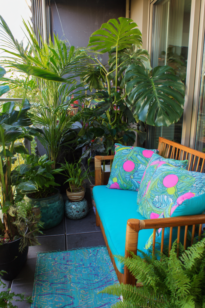 Create a lush tropical getaway with bold foliage and vibrant colors. I’ve transformed my balcony into a mini jungle that feels like a vacation destination. Choose large-leafed tropical plants like monstera, bird of paradise, or banana plants in substantial pots. Add smaller ferns and philodendrons for layering. Use bright cushions in hot pink, lime green, or turquoise. Incorporate natural materials like bamboo furniture or wicker baskets. Hang a colorful hammock if space allows. Add tropical-print textiles for extra impact. The key is abundance and lushness to create that immersive rainforest feeling. A small water feature adds soothing sounds. This high-impact style makes a bold statement and truly transports you to another climate zone.
