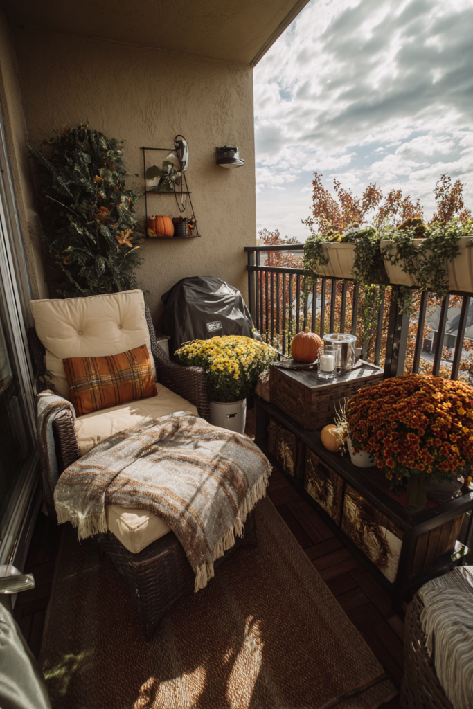 Design with flexibility to enjoy your balcony year-round across changing seasons. I’ve learned to make simple swaps that keep my space functional through all weather. Invest in weatherproof furniture covers for winter protection. Use outdoor heaters or fire pits for cool evening warmth. Switch out cushions and textiles seasonally, using thick warm fabrics in fall and light breathable ones in summer. Add removable windbreaks for breezy days. Incorporate evergreen plants that look good year-round alongside seasonal bloomers. Store summer items easily and bring out cozy blankets for autumn. Install retractable shade solutions for summer heat. This adaptive approach maximizes your balcony investment by ensuring you actually use the space throughout the year, not just during perfect weather.